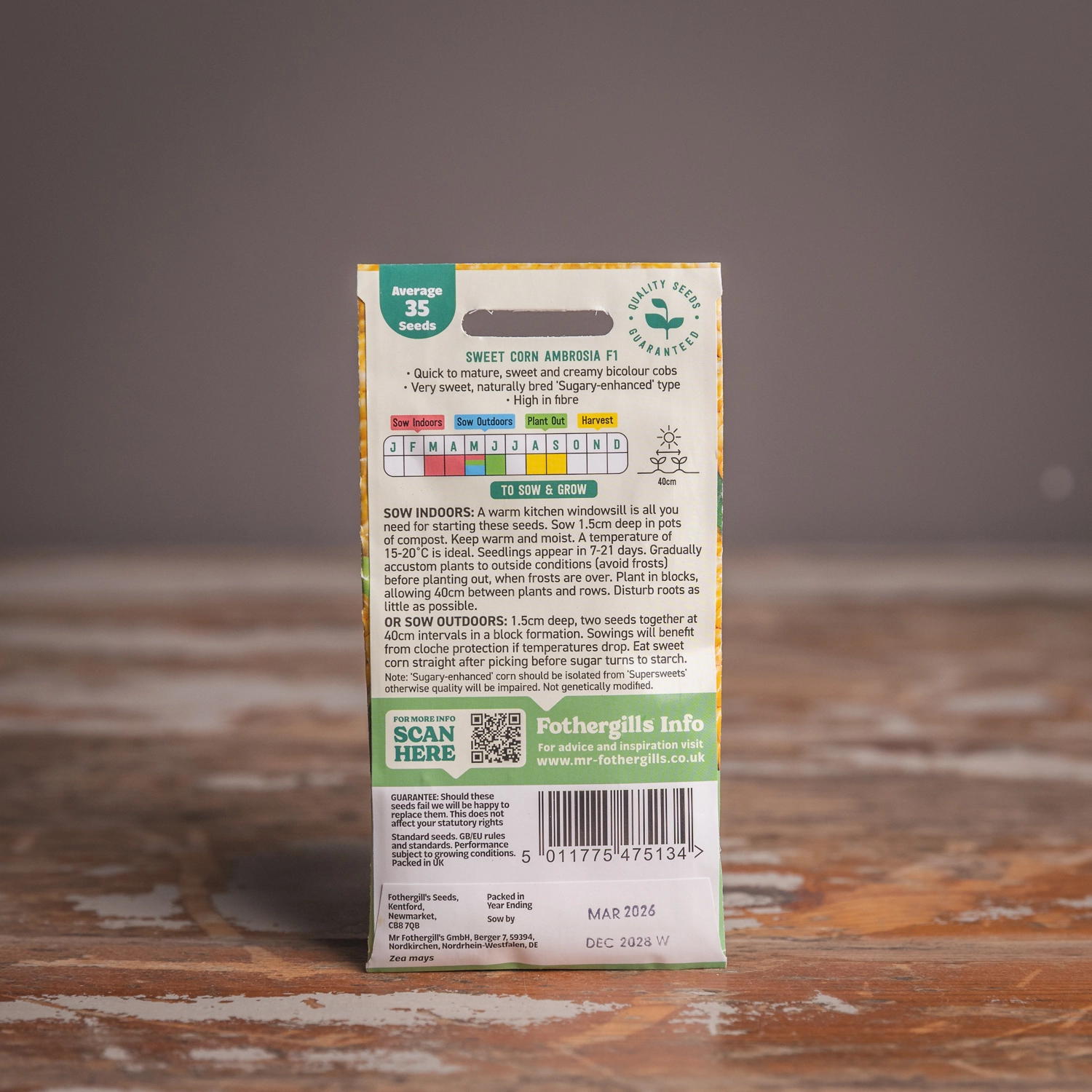 Are you looking for the product "Sweet Corn Ambrosia F1"? We offer Fothergills Seeds products in our garden centers in Donaghadee, Bushmills, Galgorm and Logwood. You can also order the product "Sweet Corn Ambrosia F1" online for £ 3.49 or check the products in Seeds & Bulbs. We look forward to seeing you soon!