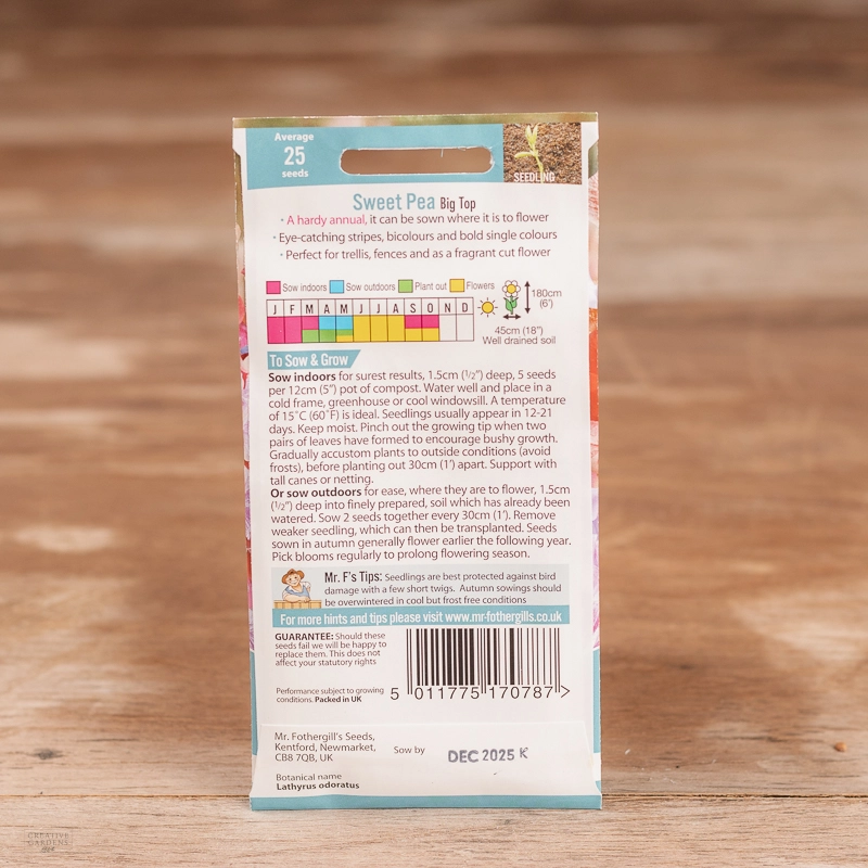 Are you looking for the product "Sweet Pea Big Top"? We offer Fothergills Seeds products in our garden centers in Donaghadee, Bushmills, Galgorm and Logwood. You can also order the product "Sweet Pea Big Top" online for £ 3.19 or check the products in Seeds & Bulbs. We look forward to seeing you soon!