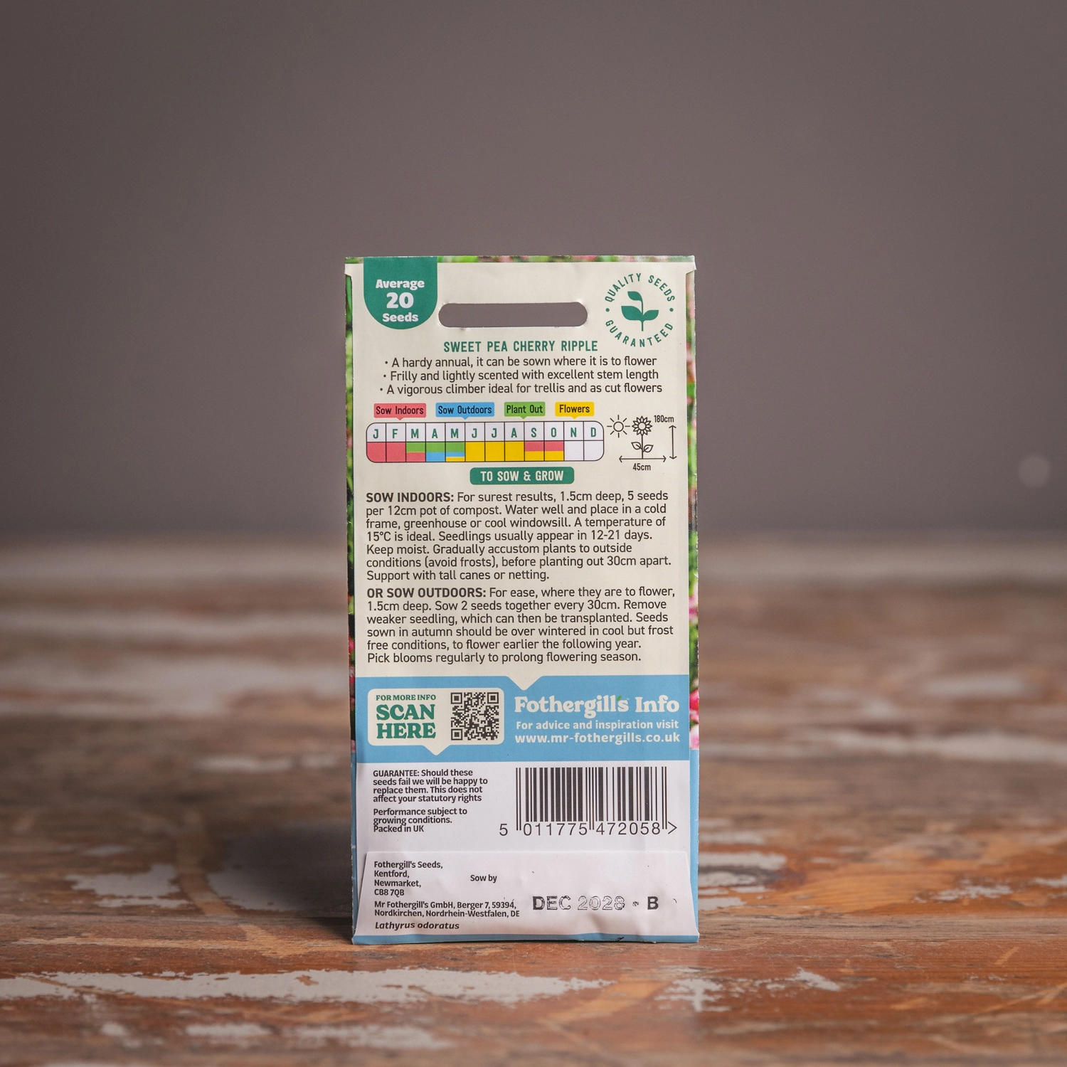 Are you looking for the product "Sweet Pea Cherry Ripple"? We offer Fothergills Seeds products in our garden centers in Donaghadee, Bushmills, Galgorm and Logwood. You can also order the product "Sweet Pea Cherry Ripple" online for £ 4.49 or check the products in Seeds & Bulbs. We look forward to seeing you soon!
