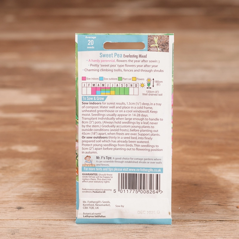 Are you looking for the product "Sweet Pea Perennial Everlasting Mix"? We offer Fothergills Seeds products in our garden centers in Donaghadee, Bushmills, Galgorm and Logwood. You can also order the product "Sweet Pea Perennial Everlasting Mix" online for £ 3.49 or check the products in Seeds & Bulbs. We look forward to seeing you soon!