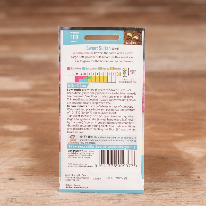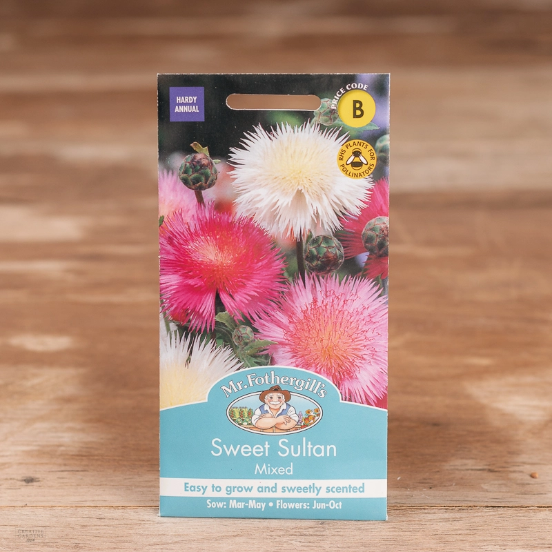 Are you looking for the product "Sweet Sultan Mix"? We offer Fothergills Seeds products in our garden centers in Donaghadee, Bushmills, Galgorm and Logwood. You can also order the product "Sweet Sultan Mix" online for £ 2.49 or check the products in Seeds & Bulbs. We look forward to seeing you soon!