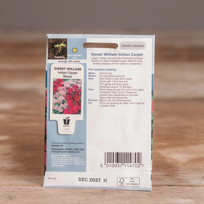 Are you looking for the product "Sweet William Indian Carpet Mix"? We offer Johnsons Seeds products in our garden centers in Donaghadee, Bushmills, Galgorm and Logwood. You can also order the product "Sweet William Indian Carpet Mix" online for £ 3.19 or check the products in Seeds & Bulbs. We look forward to seeing you soon!