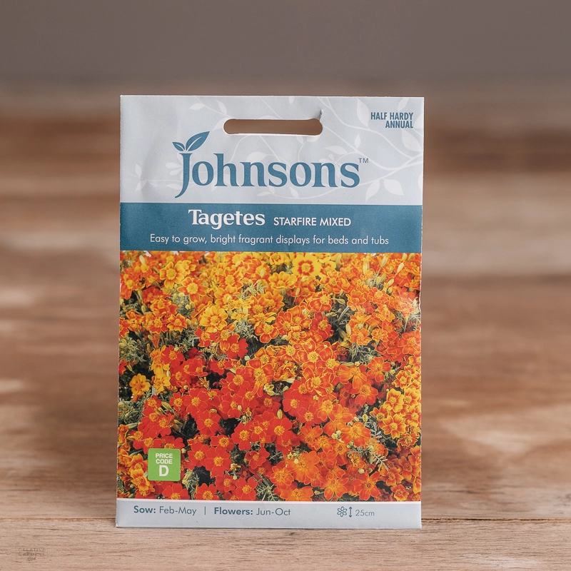 Are you looking for the product "Tagetes Starfire Mix"? We offer Johnsons Seeds products in our garden centers in Donaghadee, Bushmills, Galgorm and Logwood. You can also order the product "Tagetes Starfire Mix" online for £ 3.19 or check the products in Seeds & Bulbs. We look forward to seeing you soon!