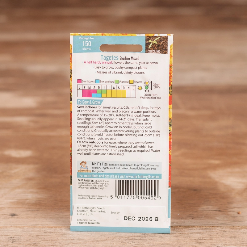 Are you looking for the product "Tagetes Starfire Mix"? We offer Fothergills Seeds products in our garden centers in Donaghadee, Bushmills, Galgorm and Logwood. You can also order the product "Tagetes Starfire Mix" online for £ 3.19 or check the products in Seeds & Bulbs. We look forward to seeing you soon!