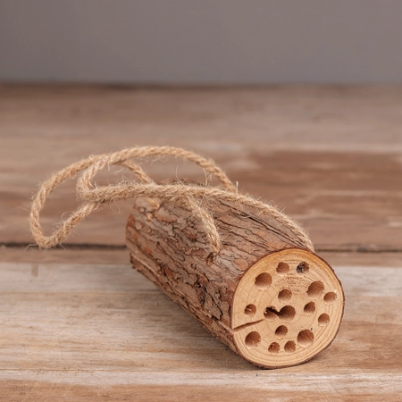 The Tom Chambers Bee Log comes with pre-drilled cavities to provide a natural and warm habitat for nesting bees.