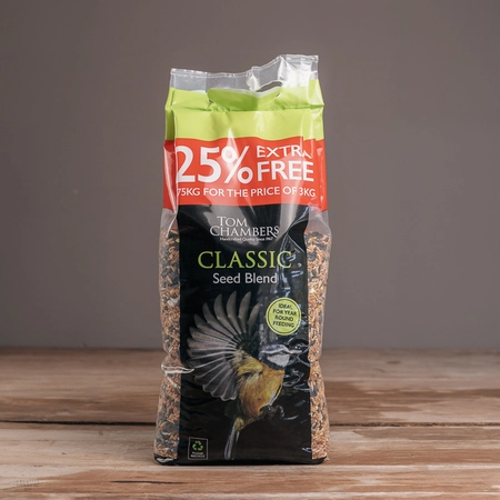 If you're a passionate bird lover, you know that the key to attracting a variety of beautiful feathered friends to your garden is providing them with a delicious and nutritious seed blend. Look no further than Tom Chambers Classic Seed Blend - now available with a whopping 25% extra free, in a generous 3.75kg pack!