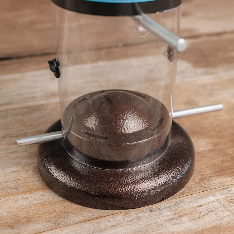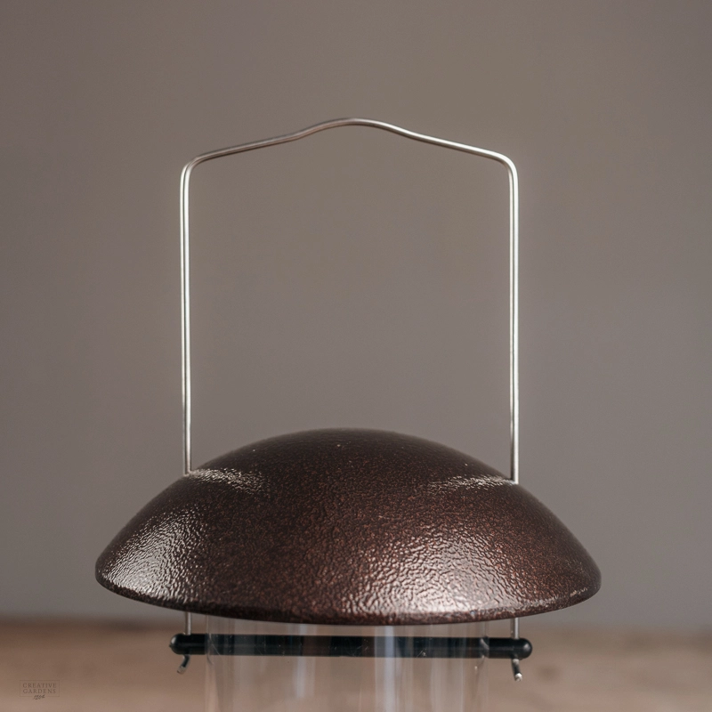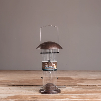 Giant durable and heavy-duty nyjer seed feeder in a stylish copper-coloured coating. Nyjer seed is very small and fine and therefore requires a particular nyjer seed feeder. This model has a wider tube to hold more seed and is perfect for a wide variety of birds to feed from!