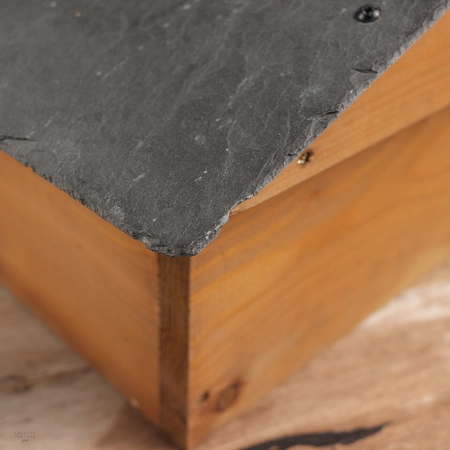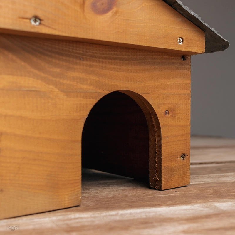 It will allow hedgehogs to shelter, breed, and hibernate. This attractive FSC wood and real slate roof will keep out any wind, weather, and unwanted predators.