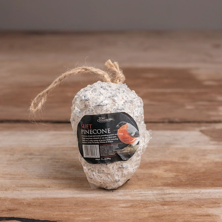 A pinecone packed full of delicious suet and seeds A blend of tasty suet, enriched with proteins, fats and fibre A source of high energy and protein, the superior treat for garden birds Attracts all of your favourite garden birds Complete with hanging rope. Perfect for hanging from branches and feeding station Approx: 0.39kg net weight. 15cm x 12cm in size. This is a natural product and sizes and weight may vary slightly