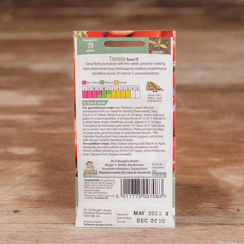 Are you looking for the product "Tomato Roma Vf"? We offer Fothergills Seeds products in our garden centers in Donaghadee, Bushmills, Galgorm and Logwood. You can also order the product "Tomato Roma Vf" online for £ 2.49 or check the products in Seeds & Bulbs. We look forward to seeing you soon!