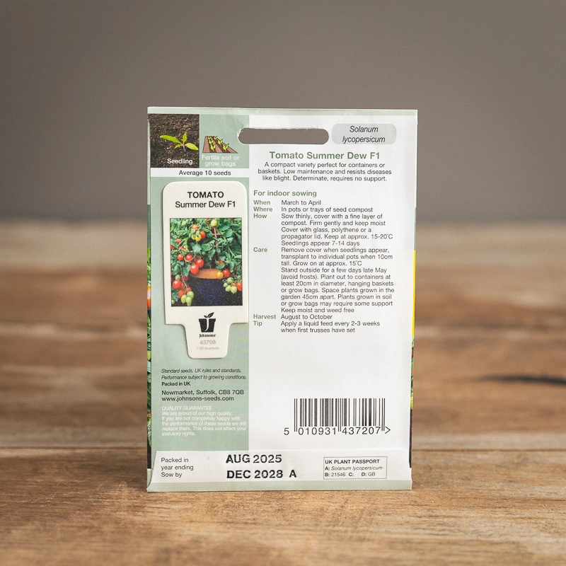Are you looking for the product "Tomato Summer Dew F1"? We offer Johnsons Seeds products in our garden centers in Donaghadee, Bushmills, Galgorm and Logwood. You can also order the product "Tomato Summer Dew F1" online for £ 3.99 or check the products in Seeds & Bulbs. We look forward to seeing you soon!