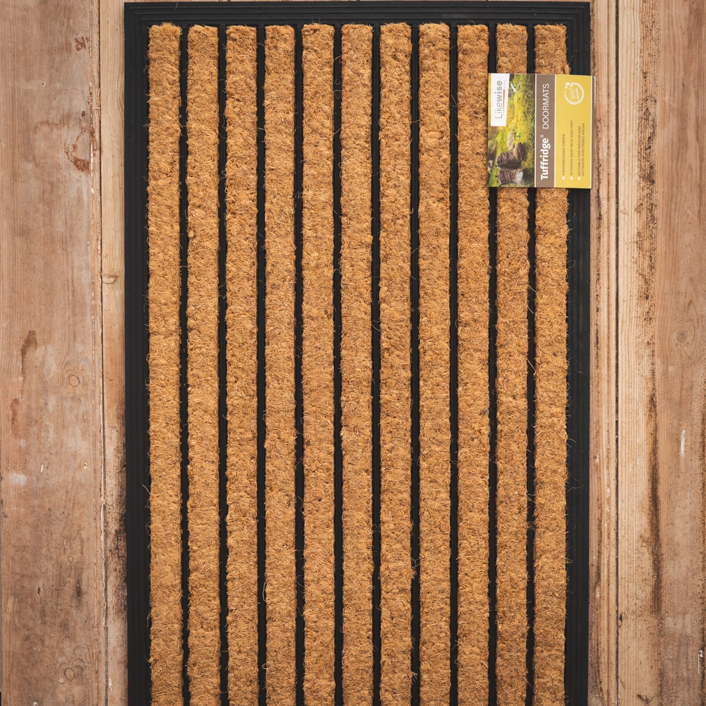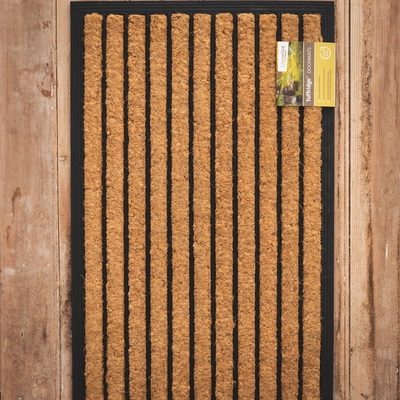 Handwoven coir pressed with rubber to create a hard wearing doormat. For best performance, use in a sheltered area.