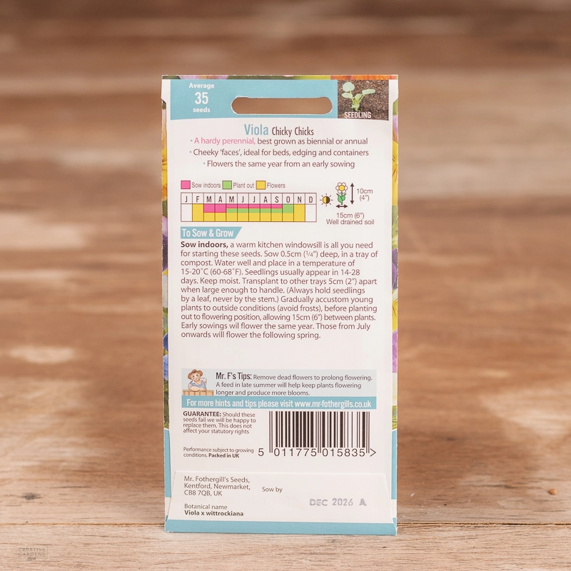 Are you looking for the product "Viola Chicky Chicks"? We offer Fothergills Seeds products in our garden centers in Donaghadee, Bushmills, Galgorm and Logwood. You can also order the product "Viola Chicky Chicks" online for £ 3.49 or check the products in Seeds & Bulbs. We look forward to seeing you soon!
