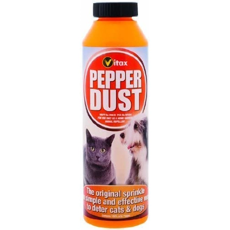 Cats and dogs can cause considerable damage to flowers and vegetables, especially at the seedling stage. Pepper Dust is the original, sprinkle-on solution which is a simple and effective way to help protect plants and crops from domestic pets. The full-strength formulation can be used on drives, paths, patios and around dustbin areas to deter cats and dogs from fouling, as well as around the garden. Before treatment, thoroughly remove all evidence of previous fouling by hosing down the contaminated area. Applying a weak detergent solution on fouled surfaces will also help break down remaining odours. Once the area is clean, apply a liberal dusting of Pepper Dust on the plants and surrounding area. Pepper Dust can be used all year round. Repeat twice a week or after rain or high winds.
