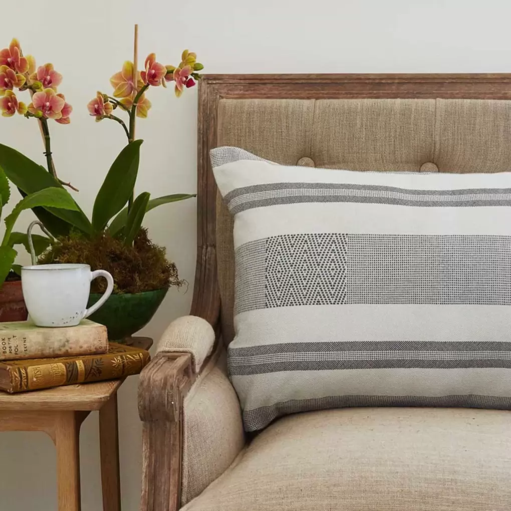 The result is not just a cleaner planet, but fabulous, soft and practical cushions that will stand the tests of time. Suitable for indoor and outdoor use, these beautiful Formentera monochrome cushions feature a stunning striped and diamond woven pattern against soft white and come in both square and rectangular sizes.