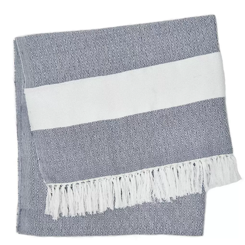 Perfect for sofas and dressing beds, these navy blue throws are also wonderful for sunbathing on or using as a machine-washable picnic blanket. Soft and stain-resistant, our navy hammam towels are quick-drying, mould resistant and incredibly easy to clean making them a brilliant choice for allergy sufferers, red wine lovers and beachgoers.