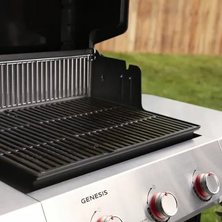 • Porcelain-enamelled, cast-iron cooking grates retain heat for searing