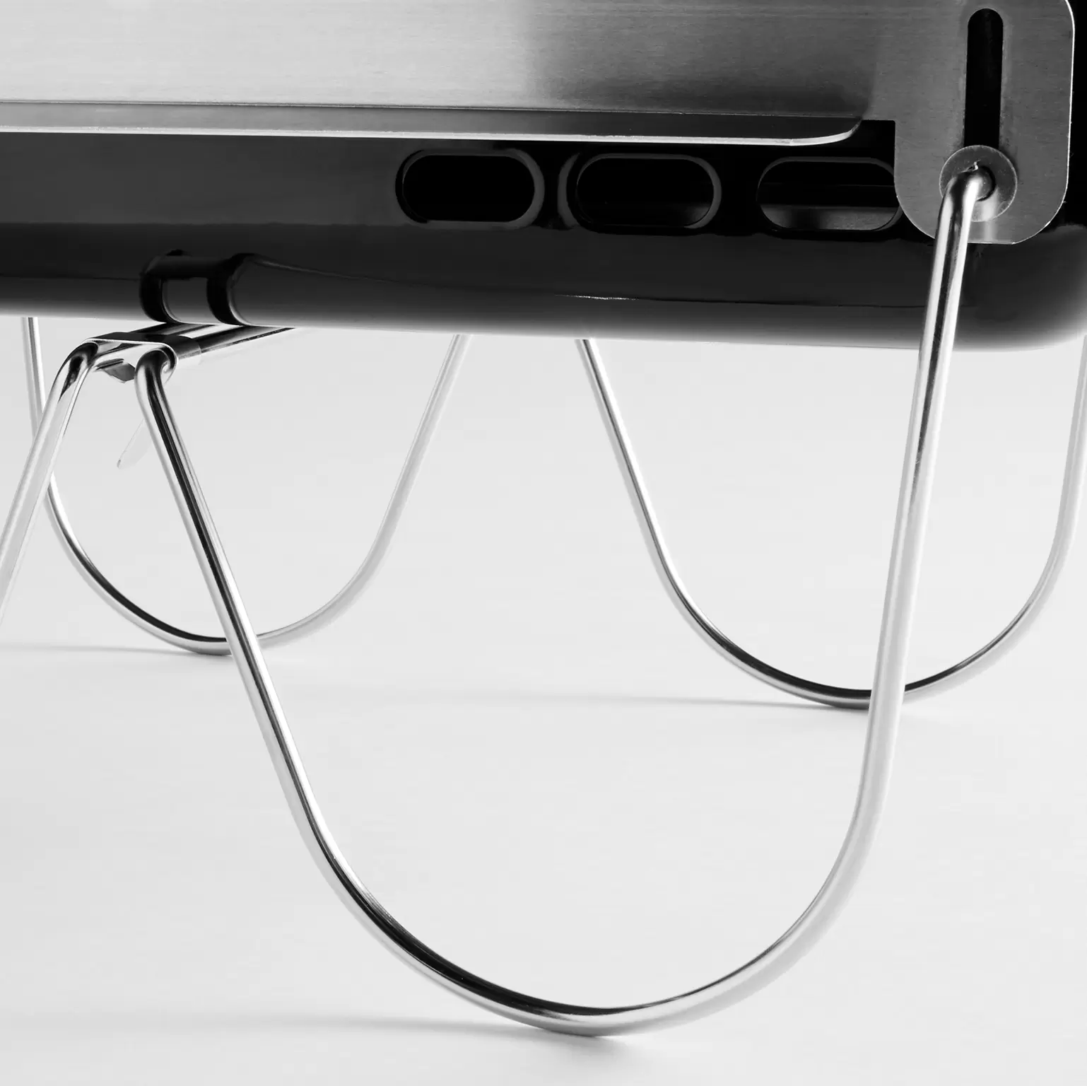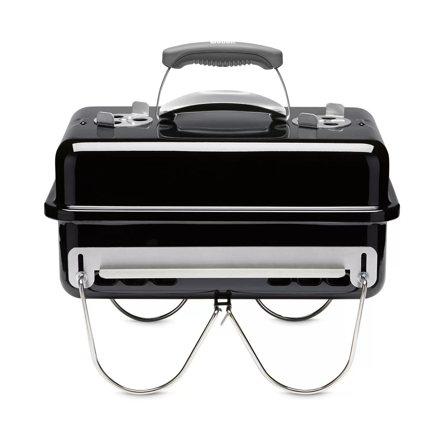 Travel with a taste of home. While spending most days on the way to somewhere else, the Go-Anywhere portable charcoal barbecue brings you back, even while on the road. The Weber Go-Anywhere is lightweight and its foldable legs make it easy to transport. The charcoal barbecue features a sturdy frame with 4 legs. The briquettes are easily placed on the aluminum lower grill designated for this purpose. When the barbecue is lit, you can control the airflow with the 2 adjustable vent grates. With the lid, you create an oven effect and grill indirectly, causing the meat to slow-roast.