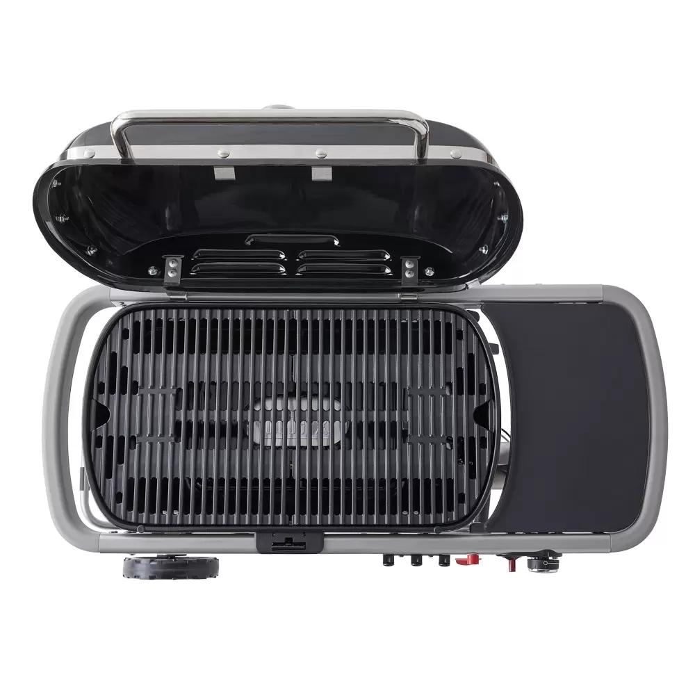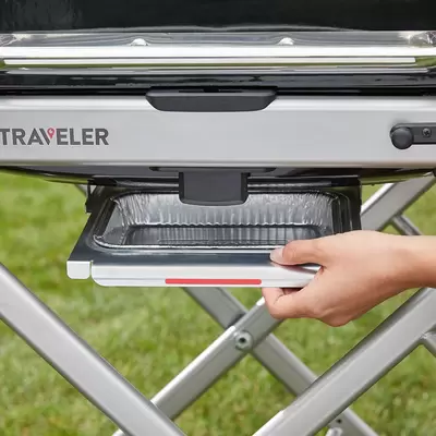 The Weber Traveler is for anyone who wants delicious barbecued food away from home. Whether you’re camping or picnicking, its sturdy, compact design makes for a seamless experience, from setup to storage. Savour the journey with homemade quality food, no matter where the adventure takes you. The Weber Traveler gas barbecue has a side table to prepare your dishes or store accessories. The grilling surface offers enough space to cook 10 hamburgers. Keep an eye on the temperature using the lid thermometer. The fat catch system makes cleaning the barbecue easy after use.