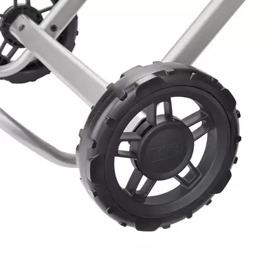 - You can easily take the barbecue with you, thanks to the foldable stand on wheels
