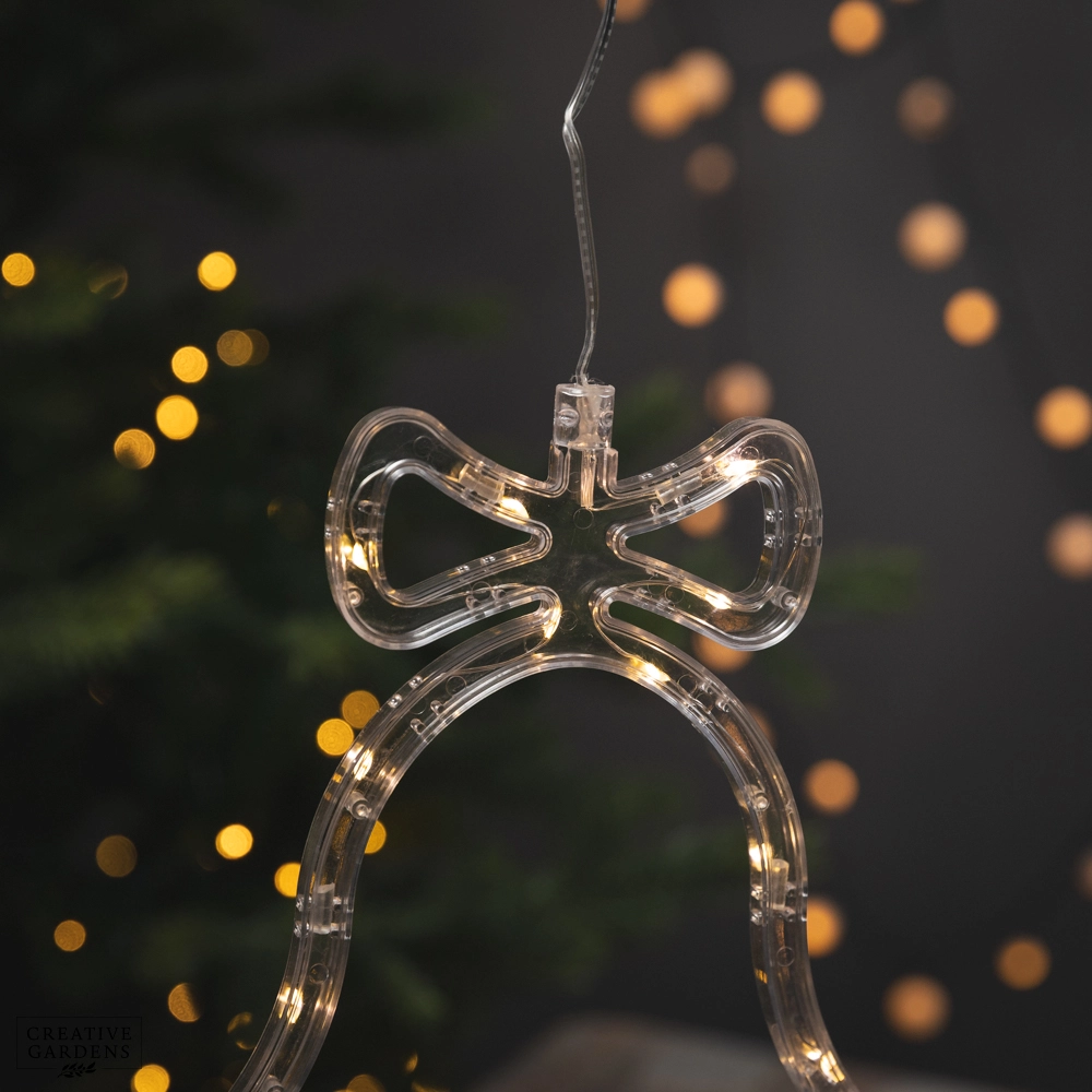 Clear frame with Warm White LED Lights on a clear wire with suction cup - perfect for attaching it to windows and doors.