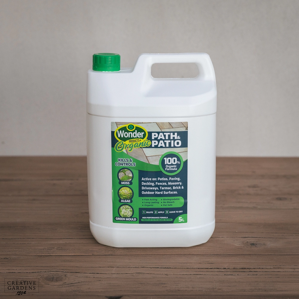Wonder Path & Patio – Concentrated disinfectant for the easy treatment, removal and prevention of green mould and algae on hard surfaces. No scrubbing or pressure washing required. Dilute, apply and leave to dry.