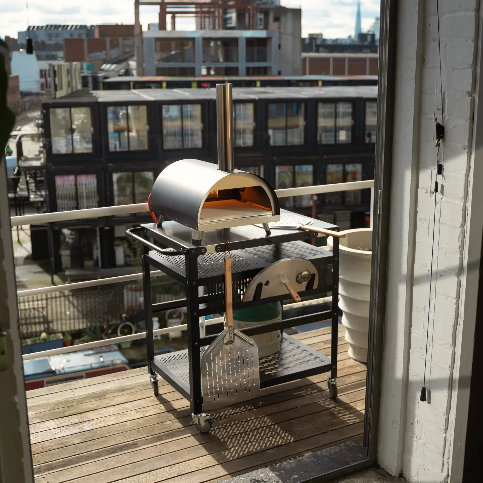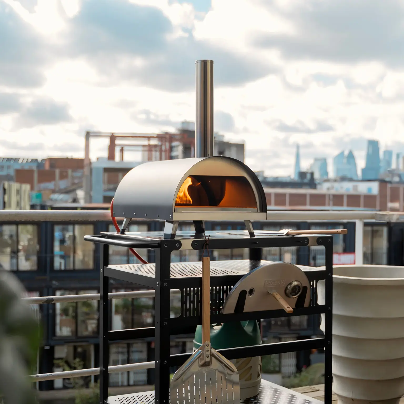 Woody Oven, perforated pizza peel, carry cover. Each oven is supplied with a cordierite pizza stone. Gas attachment sold separately unless selected.