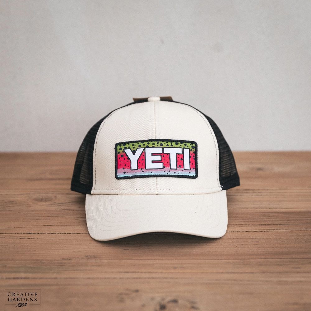 We would love to know what you think! Write a review about the product “YETI Rainbow Trout Logo Badges Trucker Hat - Cream”