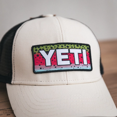 Show your love for the wild with the YETI Rainbow Trout Logo Badge Trucker Hat. This cream-colored hat features a unique, embroidered rainbow trout patch, adding a touch of piscatorial flair to your everyday look. Built with a breathable mesh back for comfort and a classic trucker style, this hat is perfect for long days on the water or kicking back around the campfire. Durable construction ensures it can withstand the elements, while the adjustable closure provides a perfect fit. Grab this hat and let everyone know where your passions lie.