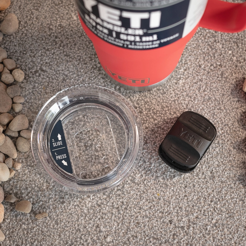 Please note: The Stronghold™ Lid is specially made for the Rambler® 20 oz. Travel Mug and won’t fit other Rambler® Drinkware models. The Travel Mug Stronghold™ Lid has four placement options and plays nice with both righties and lefties, just like all our Rambler® Drinkware. Do not use the Rambler® Travel Mug Stronghold™ Lid with carbonated beverages or for storage of food or perishables.