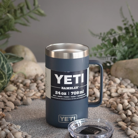With its spacious 24-ounce capacity, the YETI Rambler Mug ensures you have ample room for your morning coffee, tea, or any other beverage you desire. Whether you're savoring a piping hot cup of joe during a chilly camping trip or enjoying an iced beverage on a scorching summer day, this mug is designed to keep your drink at the perfect temperature for longer.