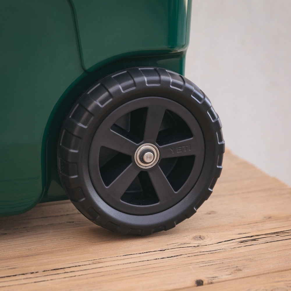 Portability is a breeze with the Tundra Haul. The NeverFlat™ Wheels, combined with the strong and durable T-Bar handle, allow you to effortlessly transport your cooler over rough terrain, sandy beaches, or gravel paths. The puncture-resistant wheels are designed to handle any surface with ease, while the strong arm handle ensures a comfortable grip and easy maneuverability.