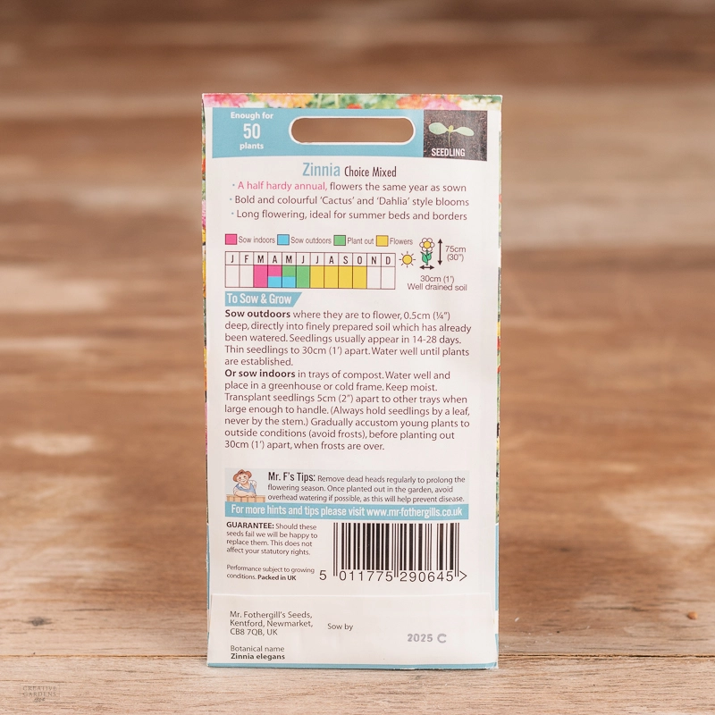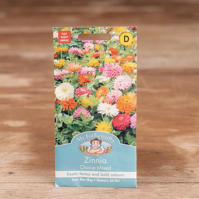 Are you looking for the product "Zinnia Choice Mix"? We offer Fothergills Seeds products in our garden centers in Donaghadee, Bushmills, Galgorm and Logwood. You can also order the product "Zinnia Choice Mix" online for £ 3.19 or check the products in Seeds & Bulbs. We look forward to seeing you soon!